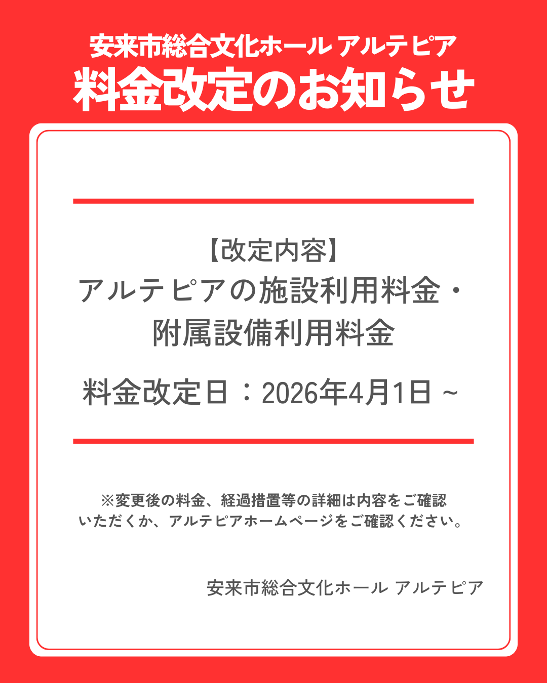 【重要】利用料金改定のお知らせ(2026年4月1日改定)