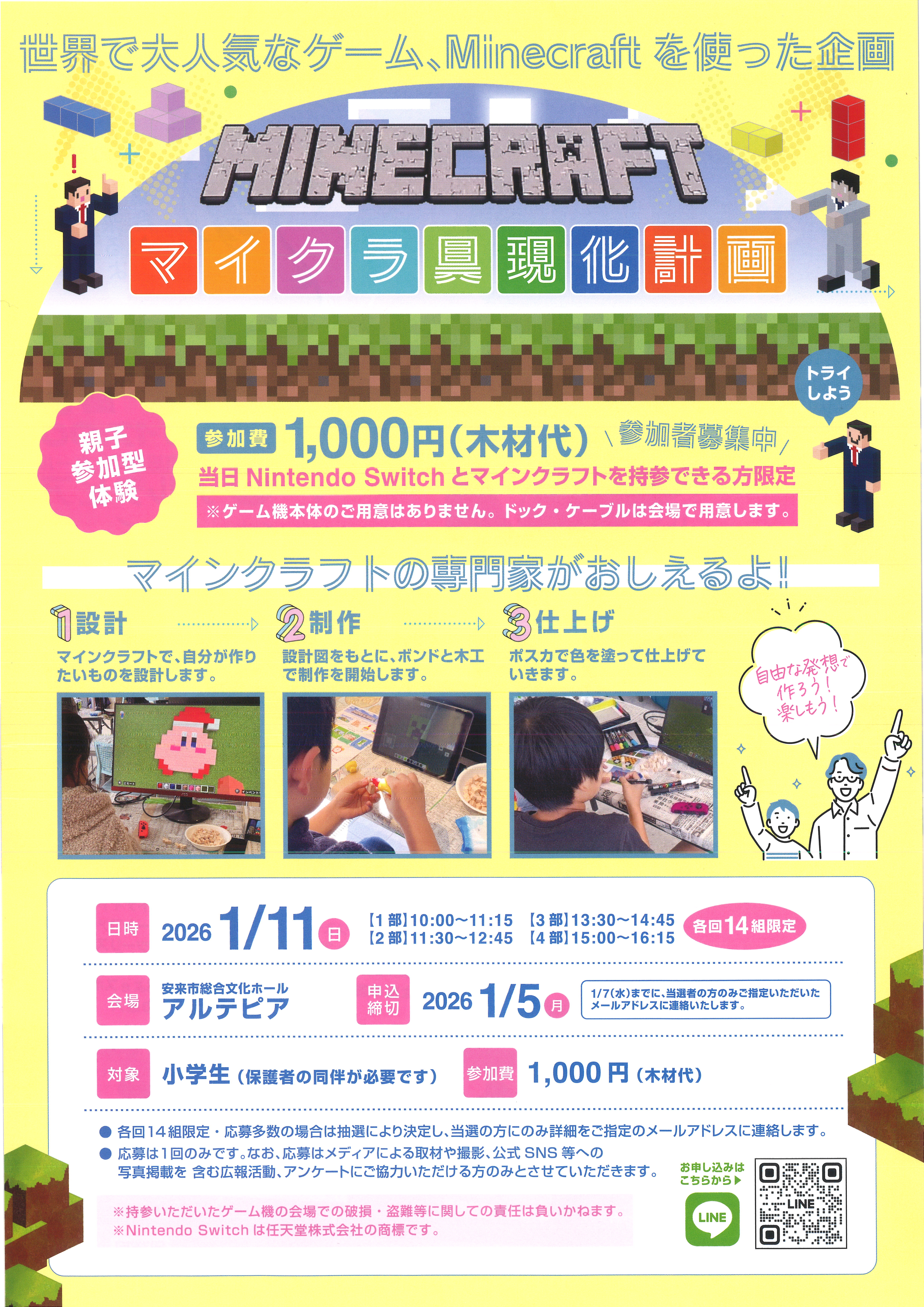 ※マイクラ具現化計画では事前申込と参加費1,000円が必要